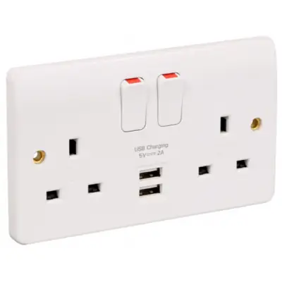 MK Logic Plus 2-Gang Socket with USB Charging White